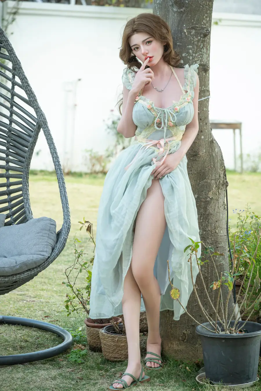 Material: Full Silicone +implanted hair+jelly breast+standing feet+articulated finger +body makeup |