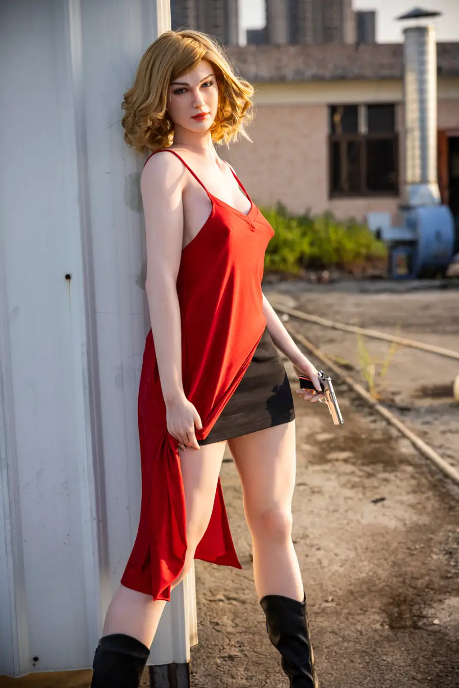 Material: Silicone +implanted hair+jelly breast+standing feet+articulated finger +body makeup |